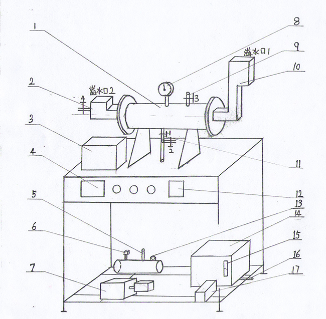 1.工作容器 2.溢流平衡水箱 3.进水压力水箱